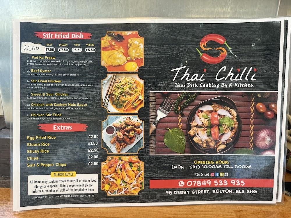 Thai Chilli sits at an unassuming spot in Bolton (BL3 6HG), yet its aroma wafts out to entice passersby—a testament to authentic Thai flavors. This casual dining spot offers a unique blend of options, catering perfectly for lunch seekers and takeaway enthusiasts alike. The open kitchen concept brings transparency and warmth, allowing guests to witness their food being freshly prepared. Despite its small size, Thai Chilli creates a cozy and inviting atmosphere. The boss lady at the helm exudes hospitality, ensuring that each patron feels welcome and valued. Seating is limited, mainly at a long communal table with bar stools, fostering a sense of community as fellow diners share their enthusiasm for the delicious dishes.